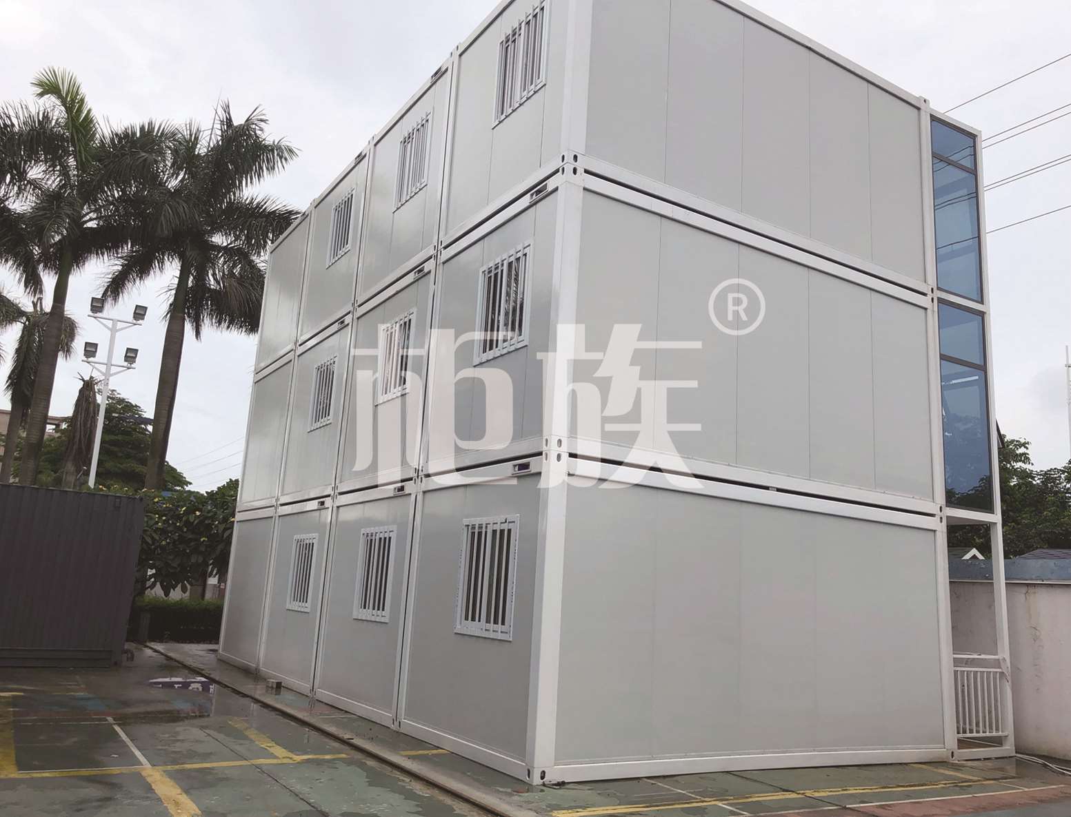 The packing container office has three floors in total, and its design focuses on the practicability of functions and the environmental protection of materials. The total capacity is about 50 people for office and meeting needs.
