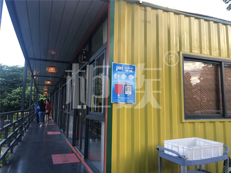 這些箱子為農(nóng)莊擴建項目,在工廠預制模塊化箱體,每個箱子就是一個包間,在現(xiàn)場進行簡單組裝即可使用,現(xiàn)場施工少,不破壞原有農(nóng)莊場地,不影響飯莊正常經(jīng)營,成本低而又美觀實用。