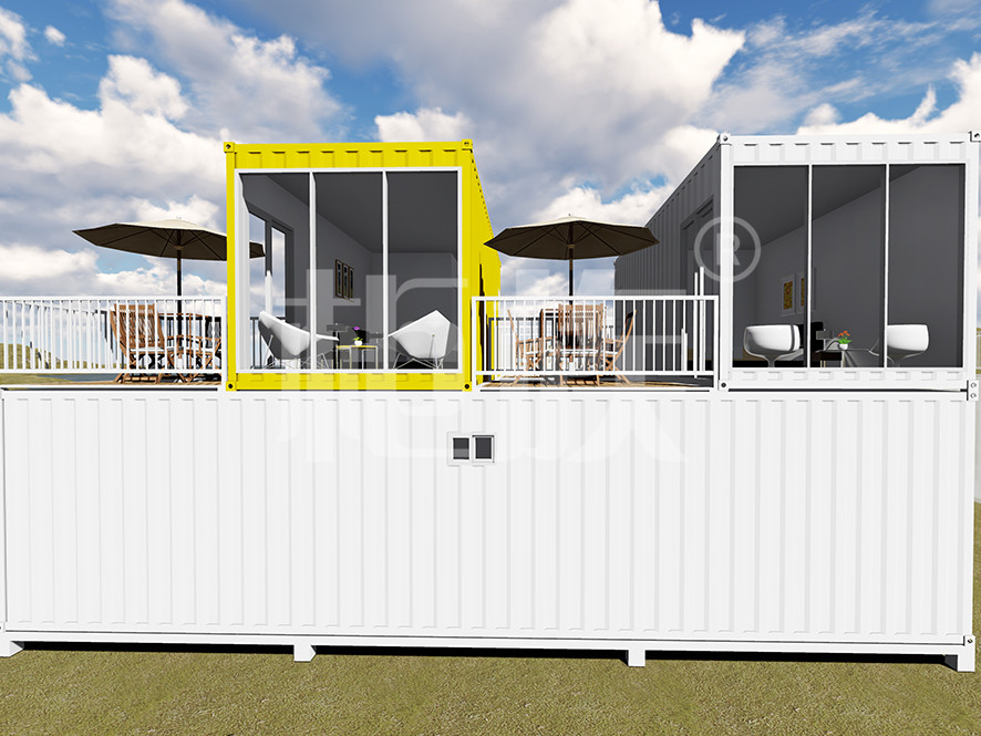 組合式公寓采用多個集裝箱疊加、錯列組合,庭院陽臺可根據(jù)屋主意愿設計建造,盡顯個性。內部實用空間充足,配套設施齊全。